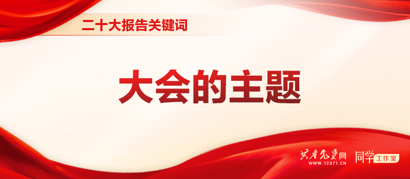 【關鍵詞】大會的主題【報告原文】大會的主題是:高舉中國特色社會主義偉大旗幟,全面貫徹新時代中國特色社會主義思想,弘揚偉大建黨精神,自信自強、守正創新,踔厲奮發、勇毅前行,為全面建設社會主義…