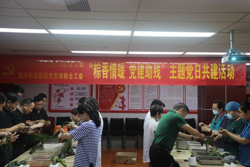 在端午節來臨之際,為傳遞助殘愛心,弘揚時代新風,澳洋華安康復醫院黨支部聯合工會與市殘聯第二黨支部聯合工會共同開展“粽香情暖 黨建助殘”主題黨日活動。