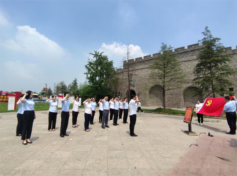在運河支隊抗日烈士紀念碑前,全體黨員莊嚴肅立,舉行了悼念儀式,表達了對運河支隊抗日烈士的深切哀思。黨員代表帶領全體黨員面對黨旗莊嚴宣誓,重溫入黨誓詞,進一步堅定共產黨員的決心和信念。