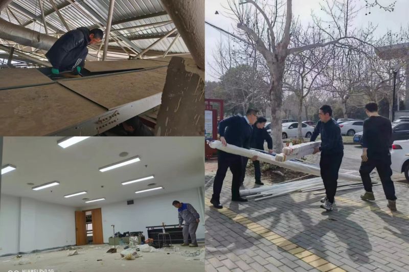 新辦公區(qū)分布在體育館主館1—3層,各樓層建筑結(jié)構(gòu)、房間戶型、施工方案均不同,在時(shí)間緊、任務(wù)重的情況下,工程維修負(fù)責(zé)人第一時(shí)間召集相關(guān)責(zé)任主體對(duì)施工方案進(jìn)行全面細(xì)致地評(píng)估研判,在做好深化圖紙、確定施工投入材料及工藝效果、落實(shí)分項(xiàng)施工方案及技術(shù)措施保障等籌備工作的基礎(chǔ)上,確保人員及作業(yè)環(huán)境安全的前提下,組織工程人員6名、歷時(shí)5天,拆除廢棄配電柜,壘砌磚墻,刮膩噴漆,改造電路,鋪設(shè)空調(diào)電纜及排水管路,共裝修改造辦公用房11間;該工程若外包費(fèi)用約8萬元,自行修繕改造費(fèi)用僅約5萬,節(jié)省約3萬元、節(jié)省比率達(dá)到37.5%。華強(qiáng)資產(chǎn)公司以“能自主維修絕不外委”的工作理念,節(jié)支降耗,改善環(huán)境。