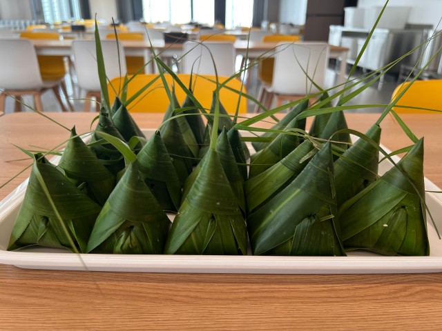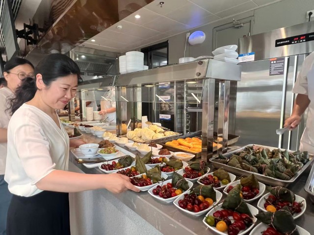 次日中午,集團工會在員工餐廳精心準備了色彩繽紛的水果拼盤、香甜軟糯的蜜棗粽子,為集團員工送上節日祝福。大家圍坐在一起,一邊分享昨日包粽的趣事,一邊品嘗蜜粽鮮果,食堂里洋溢著歡聲笑語。