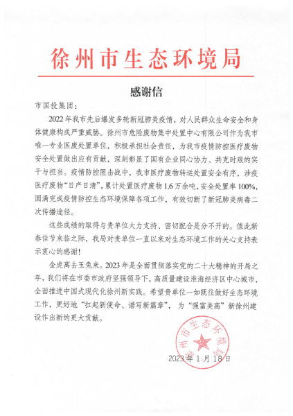 市生態環境局對國投集團為抗擊疫情作出的貢獻表示感謝