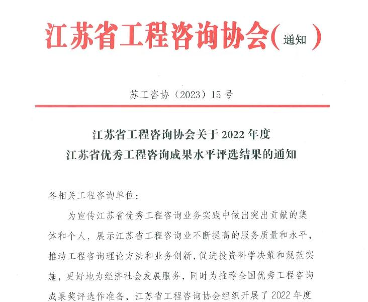 喜訊!工程咨詢中心5項咨詢成果榮獲江蘇省優秀咨詢成果獎