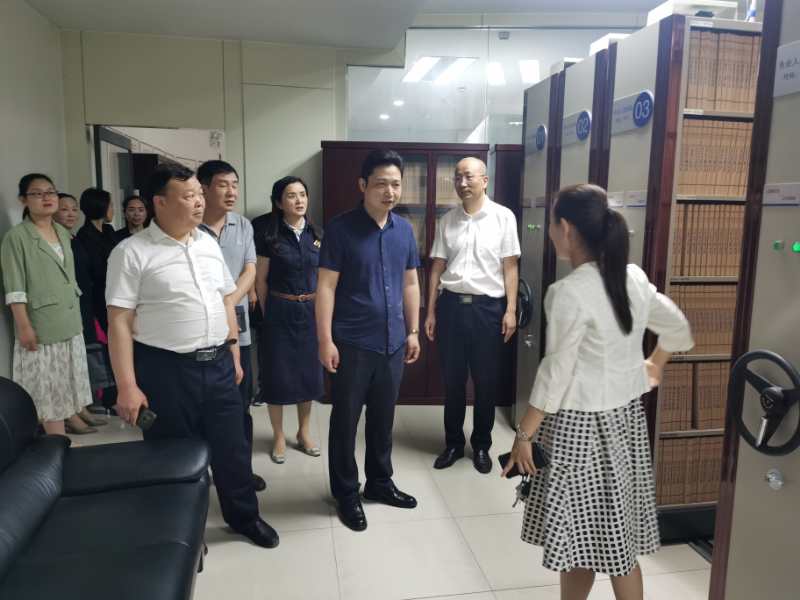 調研中,莊昱一行實地查看了C區綜合業務柜臺、代理業務柜臺、B區檔案接收室和地下檔案庫房等辦公場所,并邊查看邊詳細聽取勞代中心負責人對各部門工作開展情況的介紹。在調研座談會上,勞代中心負責人匯報了企業基本情況、經營指標完成情況、經營情況、黨建工作情況,并對開展“一違三亂兩高兩低”自查情況作了專題匯報。