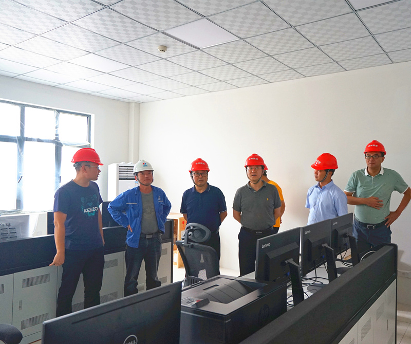 當天,姜巖一行直入34號機位點吊裝現場,詳細踏勘了雨后設備運輸的進場道路,現場觀摩了風機葉片與葉輪的對接過程,前往升壓站查看了35kv開關室、二次綜合監控室及相關設備安裝情況,詳細詢問了風電項目安全、質量、進度等方面的具體情況,與國湖公司、參建單位有關負責人員進行了現場交流,并召開了座談會。座談會上,孫雷就國湖公司風電項目建設進展、手續辦理、運維準備、安全生產與質量管控、財務資金狀況、標準廠房進展及下一步工作計劃進行了詳細匯報,國湖公司其他同志進行了補充說明。