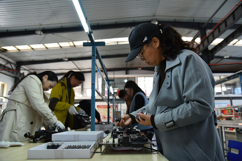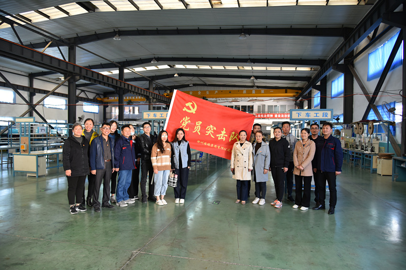 活動中,黨員同志們首先參觀了車間和各個生產線,認真聆聽新亞科技副總經理代文全為大家講解公司產品、生產流程和工藝等情況,了解新亞科技主要產品,傾聽關于“千瘡百孔”操作板、自制測試臺等生產小故事,感受新亞科技自強不息、迎難而上的攻關精神。隨后,突擊隊員們分成兩隊,男同志們在新亞科技董事長謝珉的帶領下組裝貨架,女同志們在新亞科技總經理周佩的帶領下參與工作流程,車間里氣氛熱烈,大家邊問邊學邊做,遇到貨架組裝不平、膠帶纏繞過松、保險絲按插不到位等小問題,就在技術能手的幫助下調整改進,通過不斷總結經驗,突擊隊員們逐步從生疏到上手,最終圓滿完成工作任務,內心充滿勞動的喜悅。