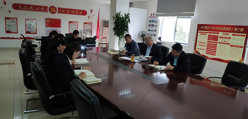 隨后,按照黨支部“第一議題”學習計劃安排,全體黨員集中學習了《習近平談治國理政》第三卷中“堅持和加強黨的全面領導”專題,原原本本、原汁原味、逐字逐句學習了《不斷增強“四個意識”、堅定“四個自信”、做到“兩個維護”》《著力從制度安排上發揮黨的領導這個最大體制優勢》《增強推進黨的政治建設的自覺性和堅定性》等內容。
