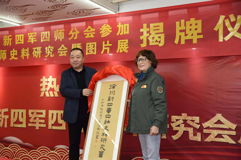 下午2點,揭牌儀式在徐州古玩城正式舉行。原國務院副總理鄧子恢之女鄧小燕、原中國人民解放軍總參謀長、中共中央書記處書記黃克誠之子黃旭、原中國人民解放軍總政治部主任、中共中央軍委常委韋國清之子韋肖毅等老一輩革命家、新四軍的后代參加了本次活動。