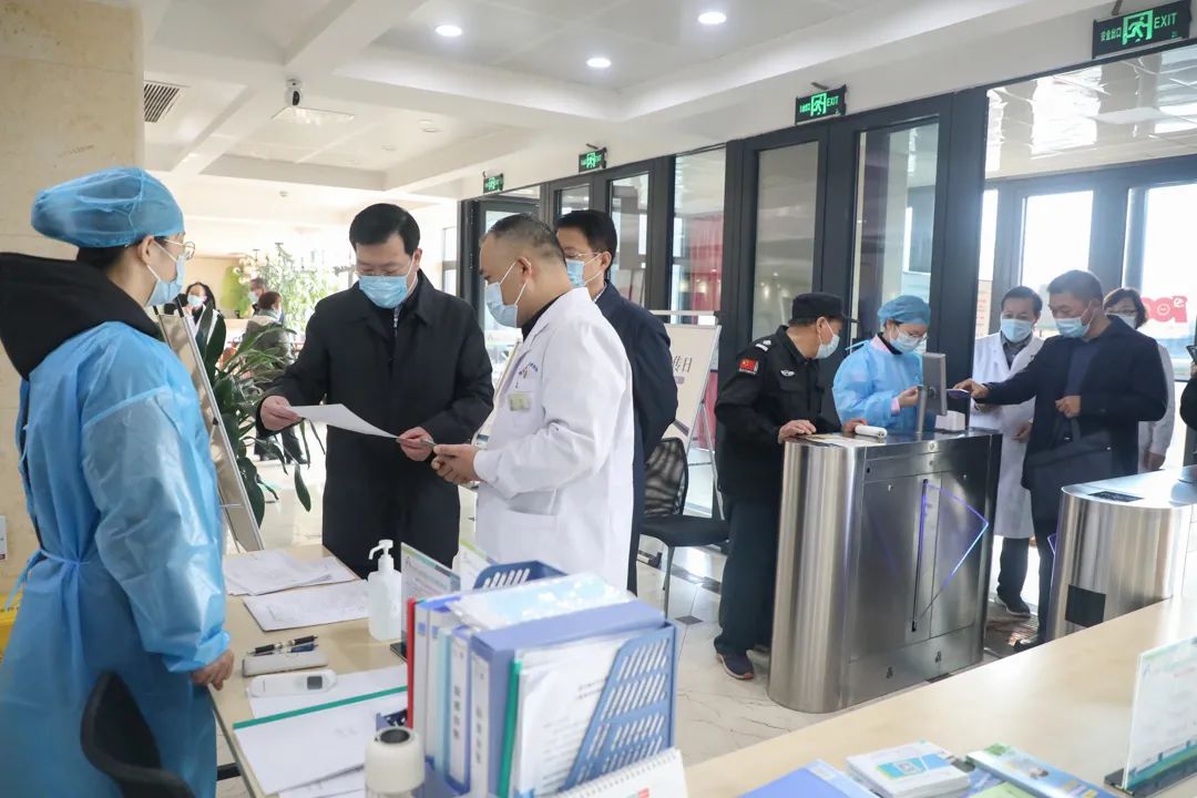 丁廣州一行深入醫院門診部、康復治療部、黨建活動室等區域,實地察看了疫情防控工作的落實情況,詳細詢問了門診預檢分診、患者及陪護管理、應檢盡檢、消毒消殺、防護用品等各方面的具體保障措施。聽取了醫院負責人關于預檢分診人員出入管理、病區患者陪護信息登記管理、應檢盡檢措施落實、醫院環境及設備的消毒殺菌、防疫物資配備、應急預案等方面落實情況的匯報。