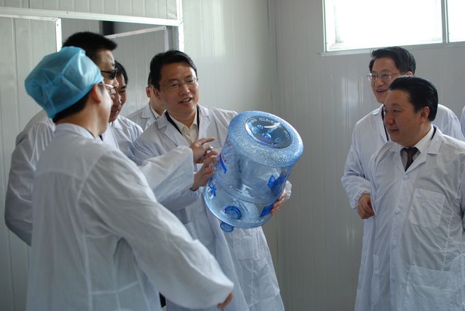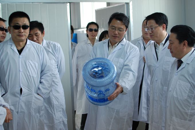 當天上午,集團公司董事長李修明、總經理李曉東、副總經理屈炎、馬英、姜巖、吳昊、副調研員劉立吉以及相關部室負責人前往水業公司廠區進行了視察。集團公司領導認真聽取了水業公司負責人對企業袋裝水、桶裝水生產、檢驗、銷售情況的介紹,參觀了生產車間和生產設備,深入了解了每一個工序的工作流程,對企業在技術創新和科學管理方面取得的成績給予了充分的肯定。