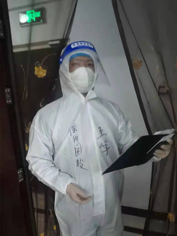 葛勤勤是物華公司黨支部第一位主動(dòng)向社區(qū)報(bào)到的同志,她參與服務(wù)的社區(qū)是富國(guó)社區(qū),該社區(qū)與她緊鄰的醒獅小區(qū)已出現(xiàn)一位確診病例,防控任務(wù)也更加艱巨。然而葛勤勤在關(guān)鍵時(shí)刻巾幗不讓須眉,義無(wú)反顧地投入到最危險(xiǎn)的檢測(cè)點(diǎn)。每天凌晨5點(diǎn)多就要出門,晚上8點(diǎn)多才能到家,厚重的防護(hù)服一穿就是一整天,為了減少污染,更是一整天不敢喝水,每天連續(xù)不停的說(shuō)話,引導(dǎo)居民掃碼、體溫檢測(cè)、辦理出入證,嗓子喊啞了,兩個(gè)年幼的孩子也無(wú)暇顧及,但她卻無(wú)悔自己的決定,總是笑著對(duì)社區(qū)干部說(shuō):“我是一名共產(chǎn)黨員,更代表著我們國(guó)投集團(tuán)青年志愿者的形象,只要疫情防控工作需要,我就會(huì)一直堅(jiān)持下去,與大家攜起手來(lái),共克時(shí)艱、戰(zhàn)勝疫情”。