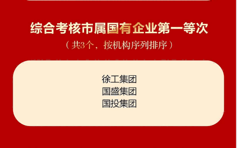 1月30日,徐州市委、市政府召開高質量發展大會,會議表彰了一批2022年度考核先進單位,國投集團榮獲位列綜合考核市屬國有企業第一等次,登上2022年度高質量發展光榮榜。