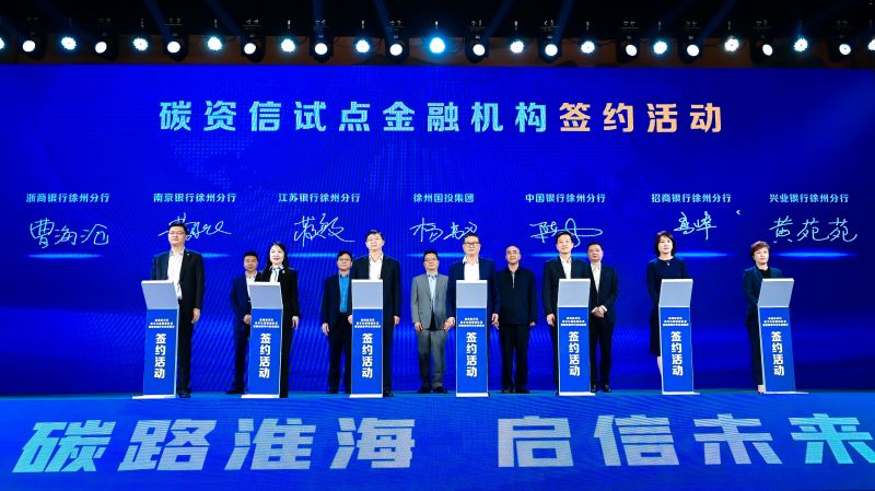 會議發布了《徐州市開展碳資信評價體系建設及金融應用試點實施方案》、數字化碳管理體系建設示范平臺。舉行了碳資信評價(淮海經濟區)服務中心、碳金融(淮海經濟區)創新集聚區、碳管理體系(沛縣)服務中心揭牌儀式。徐州國投集團與徐工機械簽訂了碳管理體系示范企業合作協議,與6家金融機構分別簽訂了碳資信試點建設合作協議。