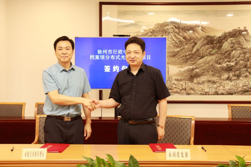 近日,徐州市機關事務管理局與國投集團舉行市行政中心屋頂光伏發電項目簽約儀式。市機關事務管理局黨組成員、副局長張傳暴,集團公司黨委副書記、紀委書記莊昱出席儀式,雙方就項目施工要求和進度進行了深入交流。