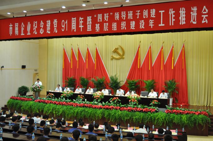6月29日上午,市委組織部、市國資委黨委召開市屬企業紀念建黨91周年暨“四好”領導班子、“基層組織建設年”工作推進會,集團公司黨委書記、董事長李修明,黨委副書記、總經理李曉東,受表彰的基層支部負責同志以及黨員代表參加了會議。會上集團公司被授予徐州市國有企業“四好”領導班子榮譽稱號,機關第三黨支部被授予“先進基層黨組織”稱號,集團公司規劃發展部部長霍凱、成功物業公司總經理楊洪偉被授予“優秀共產黨員”稱號。