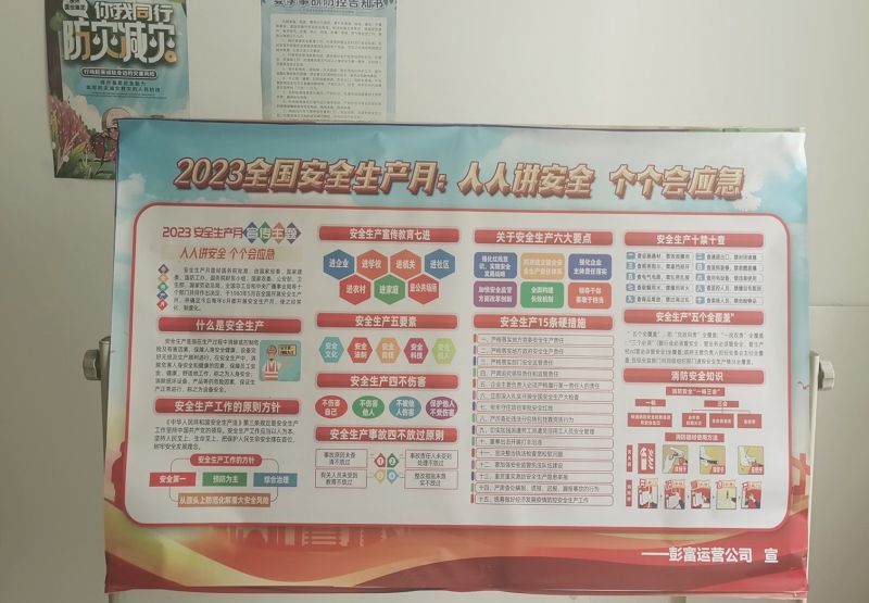 彭富運營公司:今年6月是第22個全國“安全生產月”,彭富運營公司上下樹牢安全發展理念,壓緊壓實安全生產責任,深入排查安全風險隱患,扎實推進問題整改,筑牢安全生產防線,營造安全、和諧、發展的生產環境和氛圍。6月上旬,公司召開“安全生產月”啟動會議,學習了習近平總書記關于安全生產的重要論述,真正做到學懂弄通,學以致用,融入日常安全生產管理工作。傳達了徐州市委、市政府及集團公司安全生產相關文件,深刻學習領會了集團公司2023年安全(消防)環保工作會議精神。通過制定安全生產月活動計劃,制作安全生產月宣傳海報、條幅,以及動員員工積極參與集團公司舉辦的安全知識競賽,進一步增強安全意識。