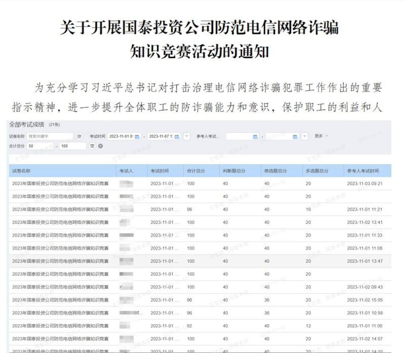 國泰投資公司采取“多點發(fā)力、持續(xù)保障”的工作方法護(hù)航“無詐企業(yè)”創(chuàng)建工作。動員全體員工積極關(guān)注并安裝“國家反詐中心”視頻號和APP,積極宣傳96110預(yù)警勸阻專線、12381涉詐預(yù)警勸阻短信系統(tǒng)等官方反詐“神器”,運用最新科學(xué)技術(shù)成果保障員工人身財產(chǎn)安全。