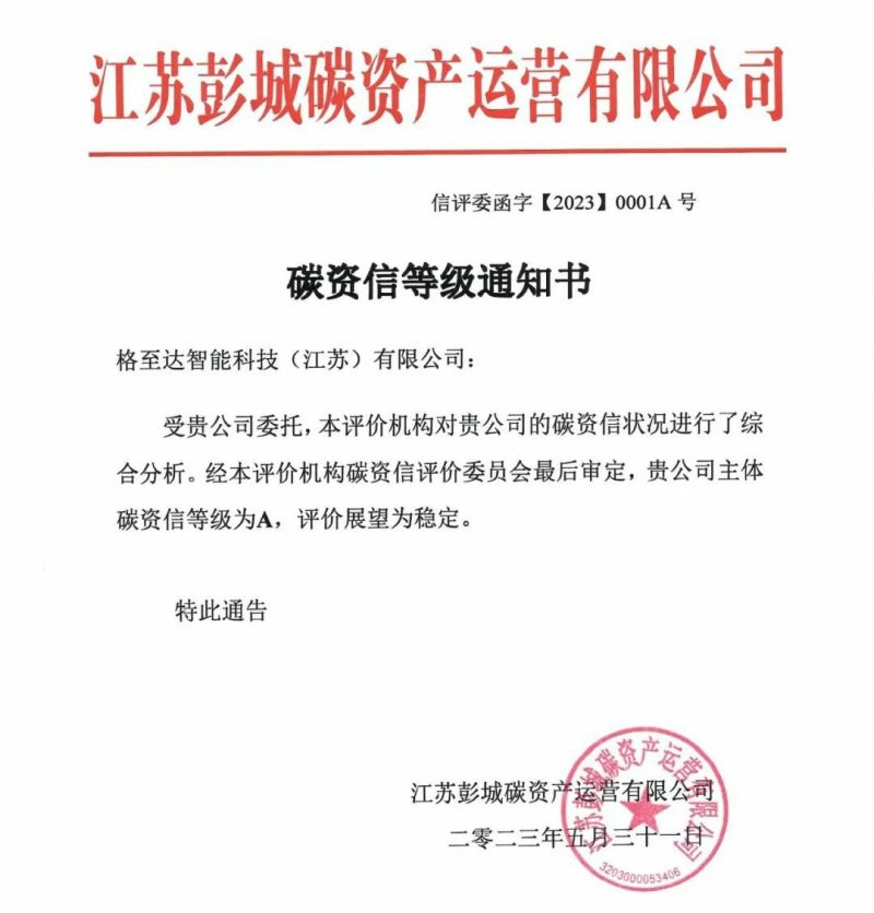從準(zhǔn)備“考試”,到遞交“考卷”,再到得知“成績”,這期間,復(fù)旦大學(xué)的專家、江蘇銀行、彭城碳資產(chǎn)運(yùn)營有限公司還對格至達(dá)進(jìn)行了線上調(diào)研,隨后根據(jù)依據(jù)《企業(yè)碳資信評價(jià)規(guī)范》要求形成評級結(jié)果,待復(fù)旦大學(xué)審核后報(bào)到上海環(huán)境能源交易所進(jìn)行備案。
