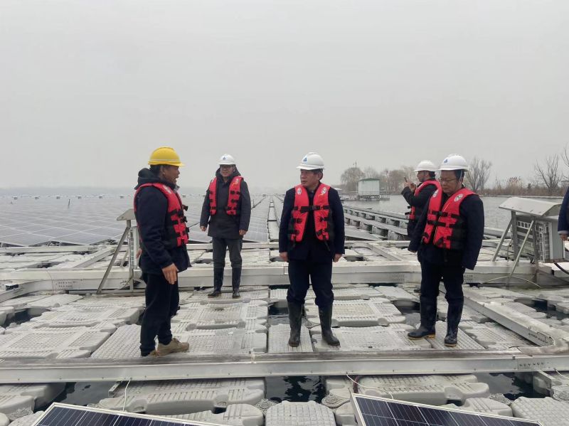 尹振清一行先后查看了光伏電站中控室、一次室、二次室、匯流箱、逆變器、水上光伏組件及消防器材等重要設(shè)備設(shè)施,詳細(xì)了解了各重要點(diǎn)位的安全生產(chǎn)風(fēng)險(xiǎn)及安全防范措施落實(shí)情況。