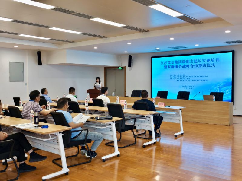 為提升江蘇蘇信集團碳能力水平建設,把握雙碳目標下企業發展新機遇,加入碳管理體系建設服務生態圈,共同推動雙碳目標的實現。在上海環境能源交易所、碳管理體系能力建設(淮海經濟區)培訓基地的支持下,由江蘇蘇信集團主辦,江蘇蘇信徐州分公司參與的江蘇蘇信集團碳能力建設專題培訓暨雙碳服務戰略合作簽約儀式于5月29-31日在徐州順利舉辦。江蘇蘇信集團總裁龔敏飛,江蘇蘇信徐州分公司總經理杭宏亮,彭城碳資產公司相關負責人出席活動并致辭。