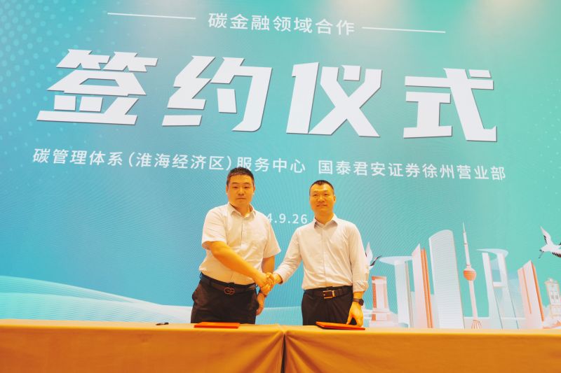 會上,碳管理體系(淮海經濟區)服務中心與國泰君安證券徐州營業部以“碳金融”助企盤活碳資產為目標共同簽訂了碳金融產品創新戰略合作協議。上海環境能源交易所相關專家重點分享了碳市場新政解讀,圍繞全國碳市場的總體框架、市場基本情況及今年發布的相關碳市場條例等方面,助力企業熟悉市場規則,提升各類主體參與能力和管理水平。政府有關部門就超長期國債申報、綠色工廠申報、產品碳足跡工作開展等雙碳政策及資金申報內容向企業進行詳細解析。