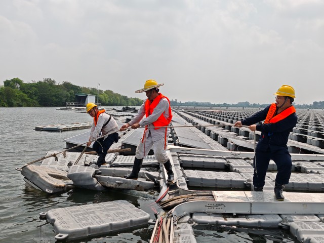 災后的現場一片狼藉。電纜通道擠壓變形、電纜落水、浮筒散落,給搶修工作帶來了不小的阻礙,搶修工作刻不容緩。受災當日凌晨5點31分,所有人抵達現場,開始對箱變和高壓電纜進行分段檢查。他們一寸寸排查故障點,在烈日下一干就是十幾個小時,工作服上鹽霜一層層堆積,直到當晚8點40分,才成功恢復部分供電。