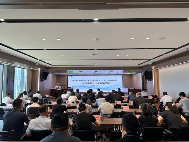 為深入貫徹落實國家“雙碳”戰略目標,加快推進徐州市零碳園區建設。7月25日上午,由徐州市發改委主辦的“國家零碳園區和生態文明建設示范區(生態工業園區)政策培訓會議”在徐州國投集團召開。會議特邀中國環境報社總策劃師、國環產研(北京)環??萍脊究偨洕鷰煹詾I,中國環境科學院高級工程師袁殷,國環產研項目總監陳天龍、技術專家張莎出席授課。市發改委二級調研員和相見,徐州國投集團黨委委員、副總經理王濤,市發改委、科技、工信、生態、商務等部門業務處室主要負責人出席會議,各地經發部門分管和科室負責人,有關園區管委會分管負責人共計50余人參會。