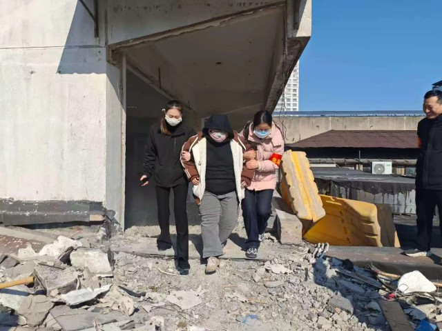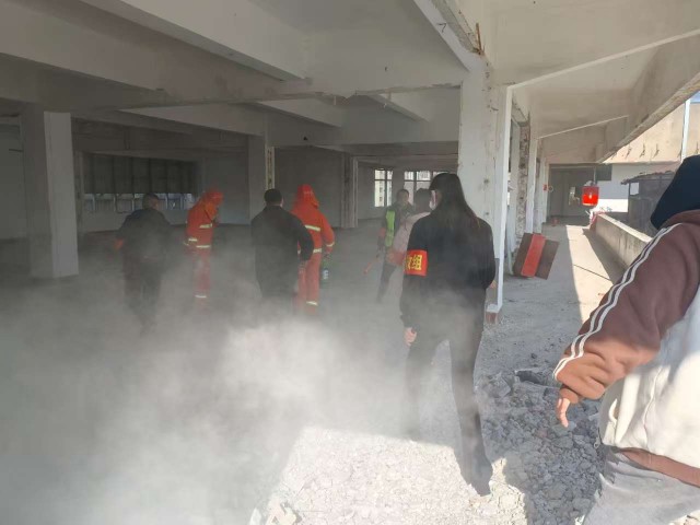 重頭戲在樓頂平臺上演。模擬火情設定為六樓,因電路短路引發火災,濃煙迅速蔓延。隨著總指揮一聲令下,應急廣播響起,各小組聞令而動:疏散組引導“顧客”低姿捂鼻、沿安全通道有序撤離;滅火組攜帶滅火器奔赴起火點實施初期撲救;醫療組則對“受傷人員”進行檢傷分類并實施轉移……整個過程指令清晰、配合默契,僅用3分鐘便完成全員疏散,真正做到了“反應快、組織嚴、處置穩”。