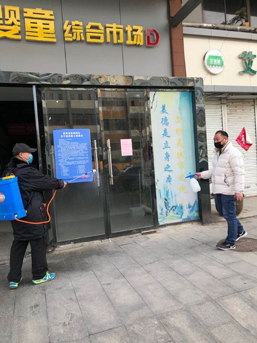 市場營業后,朱豹同志總是提前到達市場,這里是他的“戰場”,他一遍遍叮囑員工和業戶做好自我防護,一次次的背上消毒藥箱親自進行環境消毒,一回回的帶領意向租賃客戶奔走于市場的閑置商鋪、倉儲倉庫只為擴大租賃率,為企業增加營收。每天他檢查完市場安全后才放心離開,對他來說已經沒有按時下班的概念,沒有休息日的概念。平凡崗位的默默奉獻體現的是擔當的高尚品格。
