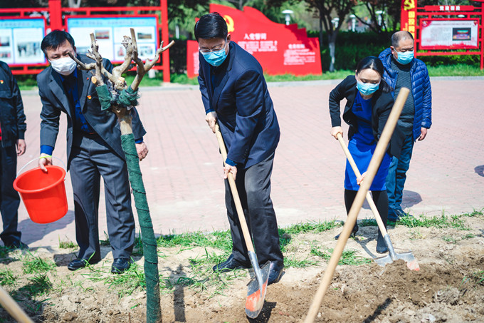 4月7日下午,集團公司總經理姜巖、副總經理郭壘率相關部室負責人調研華強資產公司、商辦工業公司重點工作。具體察看了集團公司黨建主題公園優化改造情況,并一起植樹,以實際行動促進生產經營加快恢復,倡導綠色發展理念。