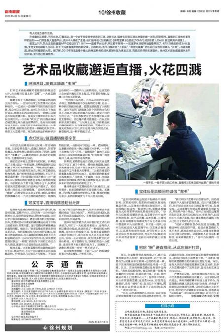 華強資產公司所屬的蘇悅文化公司直播基地自推廣以來,在徐州文化圈內引起了強烈共鳴,都市晨報文化專欄記者知悉后,主動聯系蘇悅公司進行了采訪,并與2020年4月14日(周二),對此進行了整版報道。